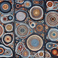 acrylic-painted canvas amd thread