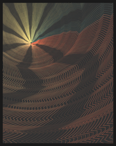 INTERFACE Marshall McLuhan famously observed that “the medium is the message.” The forms and tools through which we create and communicate are never neutral—they carry their own aesthetic signatures, shaping both meaning and perception. INTERFACE is an exhibit about the aesthetics of technology, with a focus that includes the emerging trends of new media, but also historical ones. As technologies evolve, so do their looks and feels: business-like terminals, 8-bit pixels, psychedelic pulp, the charm and color of Y2K, even the rhythm and timbre of the never-ending streams in our pockets. Each shift reveals not only technological progress, but cultural mood, nostalgia, and projection into the future. Yet the aesthetics of our technologies are part of a longer story. Rasping marks in wood, a distinctive brushmark or smudge of oil paint, the crackle of vinyl, or the grain of film all remind us that technology—old or new—imprints itself on the art it makes possible. A screen of green descending code can signal both the bleeding edge of tomorrow and a dated vision of yesterday’s future. A brushstroke or etching line can equally assert the presence of the medium itself. As the digital world grows ever more realistic, while simultaneously fracturing trust in what is real, INTERFACE seeks to examine the aesthetics of technology across time and media. It offers artists the opportunity to share works that reflect on how the “interface”—whether digital screen, analog tool, or material process—shapes both the appearance and meaning of what we see. For this exhibit 61 artists submitted 196 works from 26 states, Washington D.C., and 3 countries, including Canada, England, and the United States. Eight works by the following 6 artists from 6 states were selected by a blind jury process for presentation in the gallery and the Manifest Exhibition Annual publication. Presenting works by: Matthew Ballou Aubrey Birdwell Daniel DeRosato Michael Gayk Dennis Gordon Steve Novick